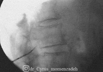 تصاویر فلوروسکوپی نشان دهنده سوزن در فضای اپیدورال:
